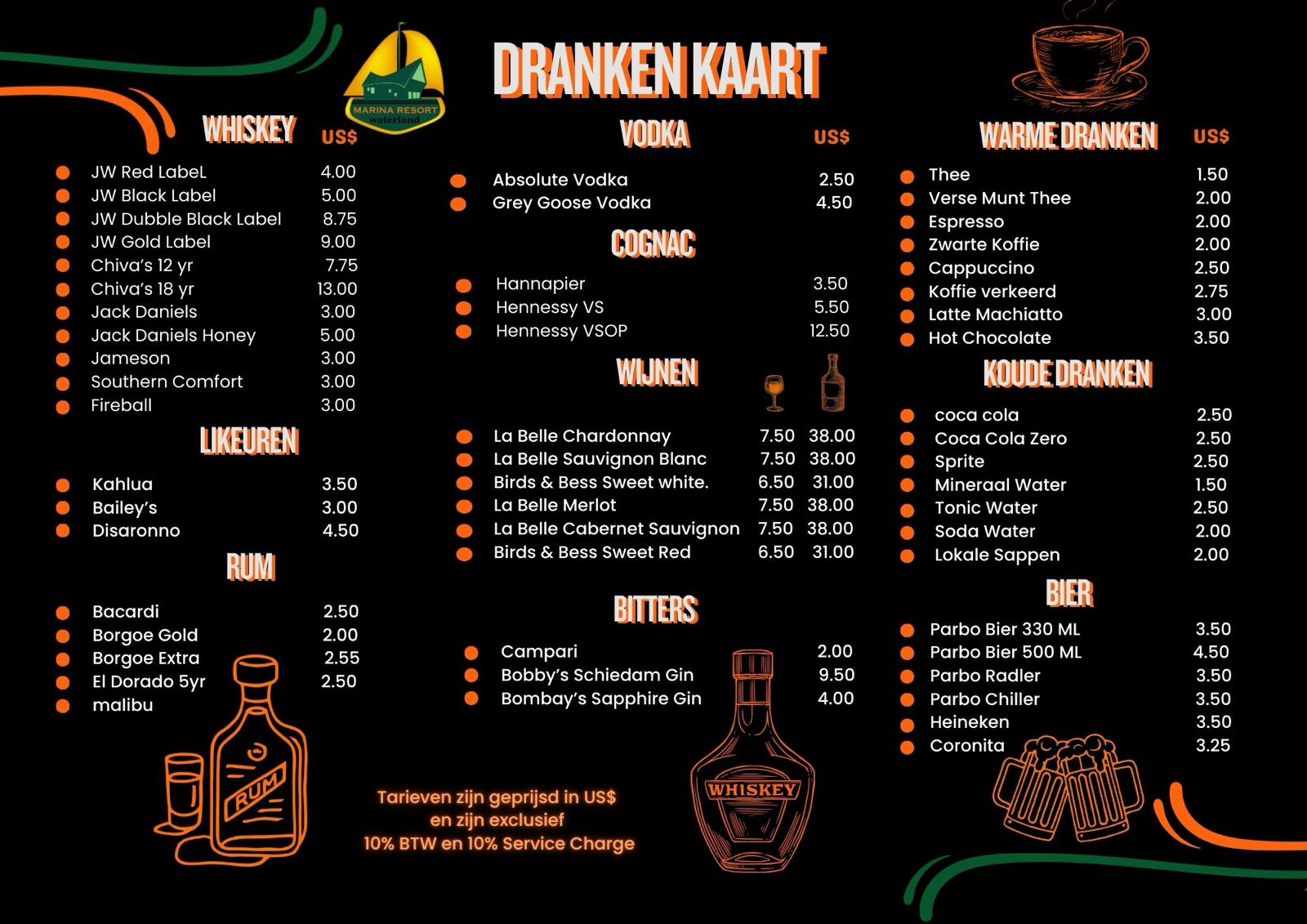 Every Saturday we offer a delicious BBQ & Pasta’s Event and every Sunday an extensive Lunch Buffet. Drinks menu